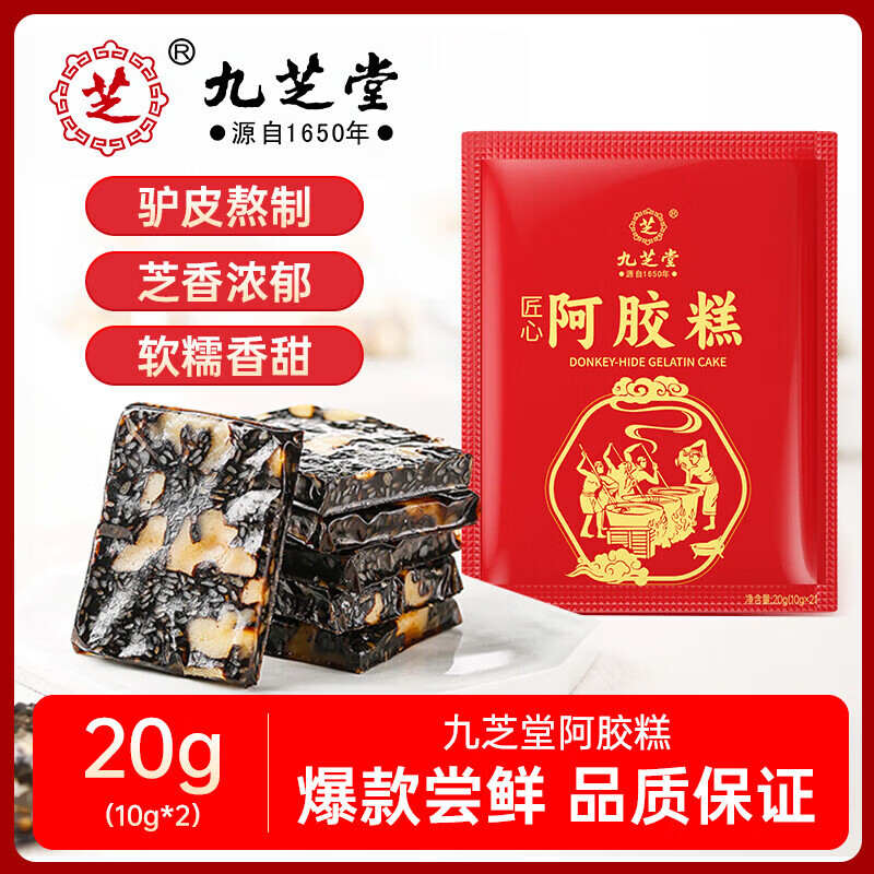 九芝堂阿胶糕20g尝鲜装仅需1元,回购正装再领100元大额券