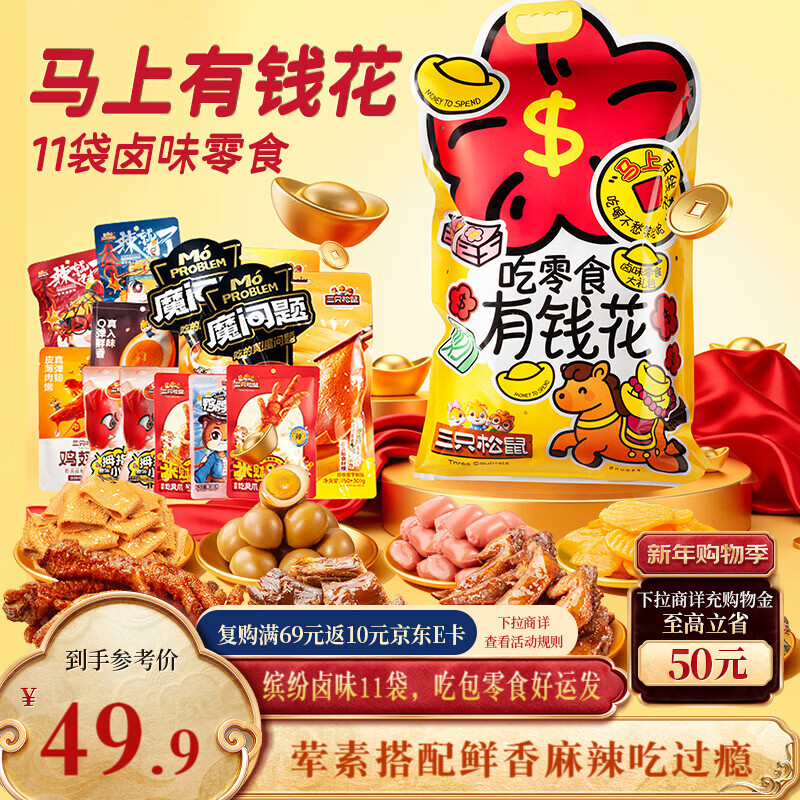 三只松鼠马上有钱花礼盒29.9元抢!816g零食大礼包过年送礼超值