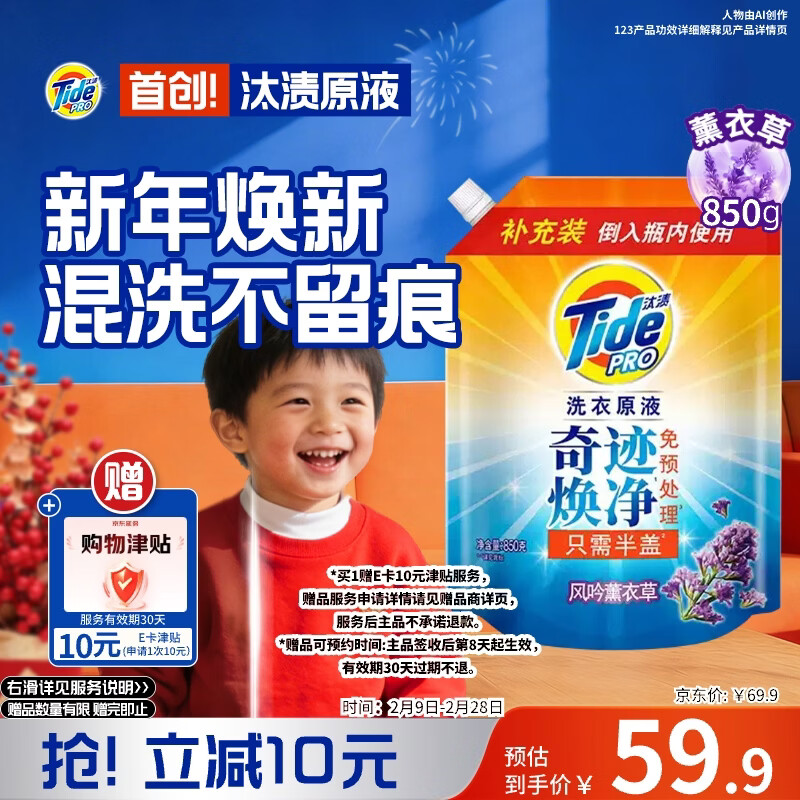 汰渍薰衣草洗衣原液1.7斤袋装首购到手价仅12.9元!