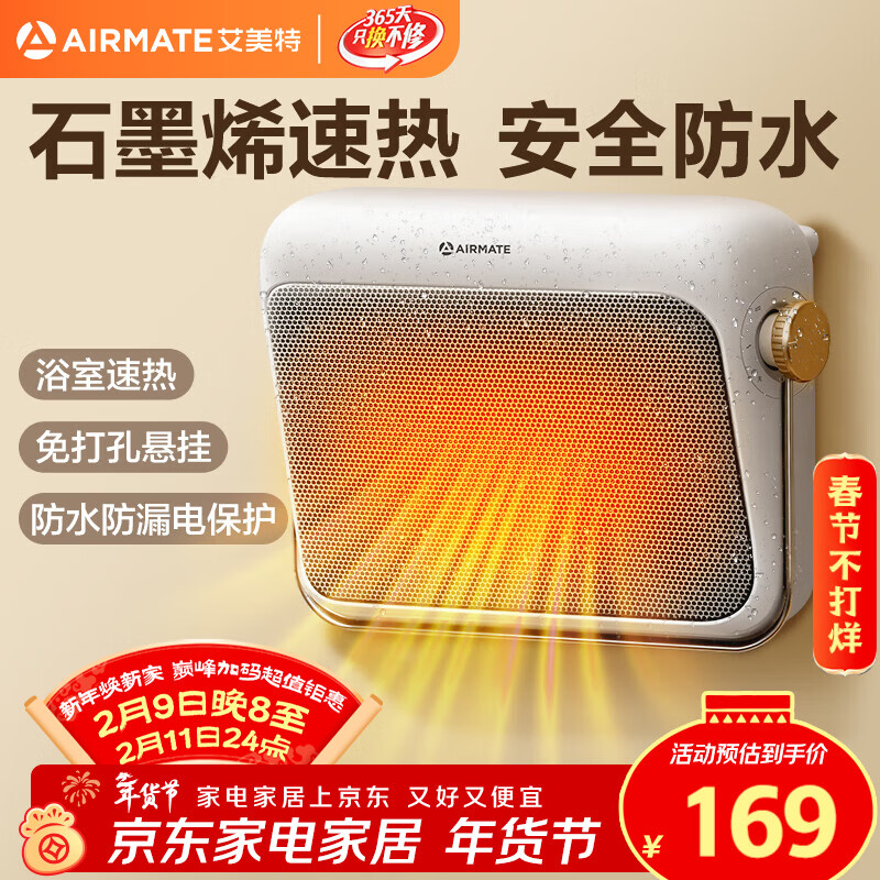 艾美特石墨烯速热防水暖风机129.31元抢购!先领满100减40元券