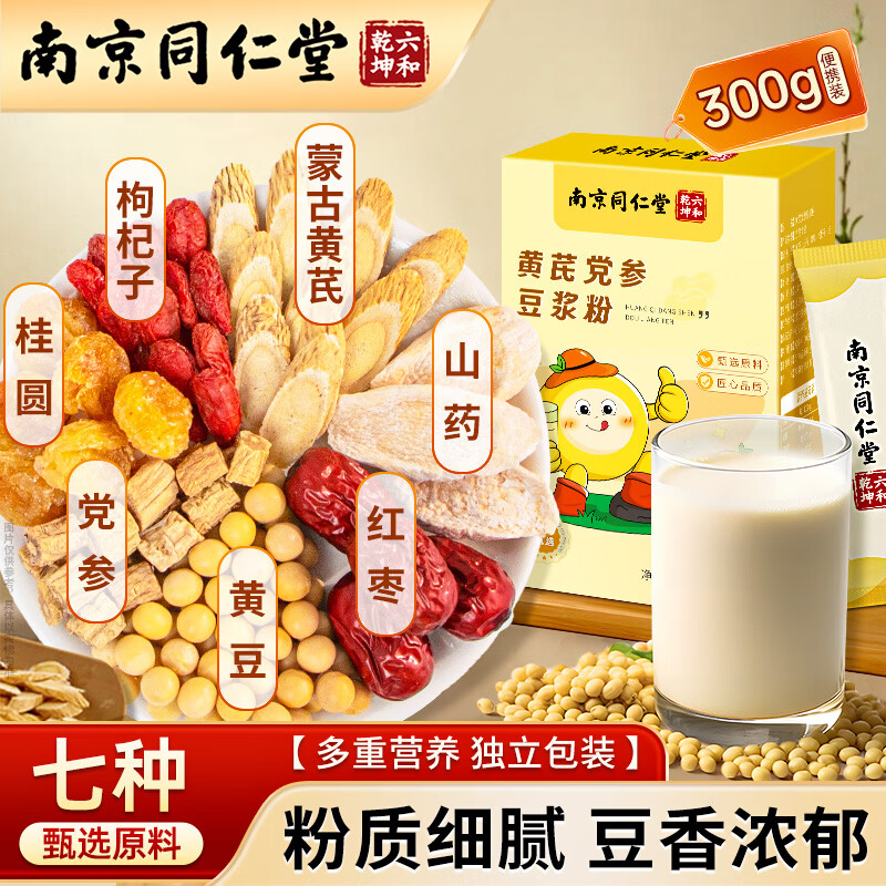 1.9元抢购!南京同仁堂黄芪党参豆浆粉300g,0添加营养早餐代餐