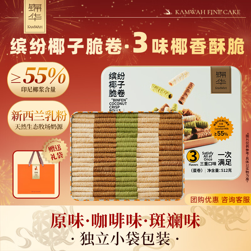 【京东年货狂欢】锦华缤纷椰子脆卷512g礼盒 学生专享凑单后仅25.54元!