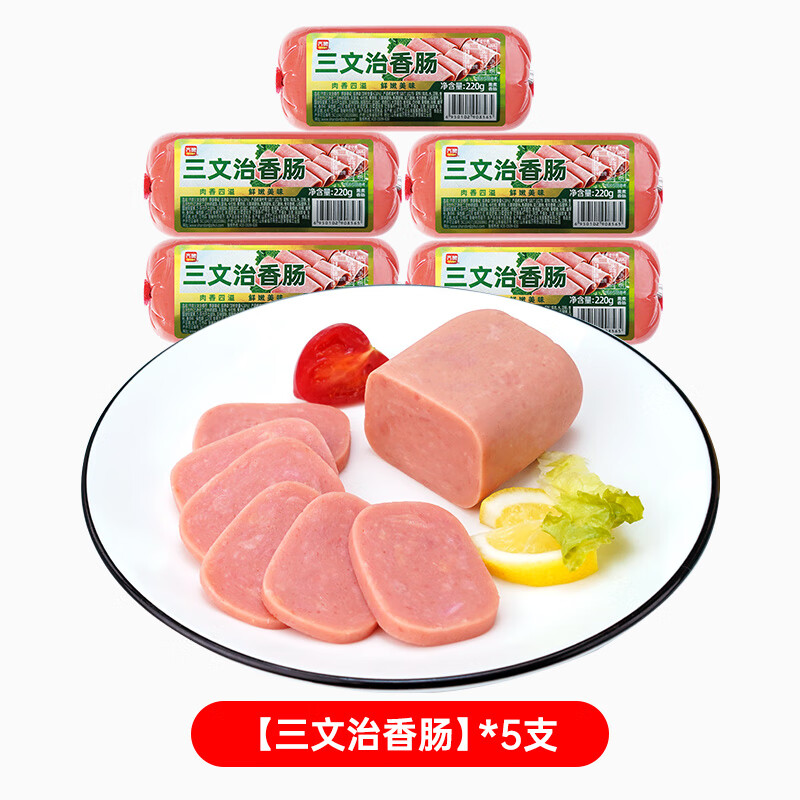 齐赞三明治火腿220g*5支 到手价仅17.9元!折合3.5元/支速食即食