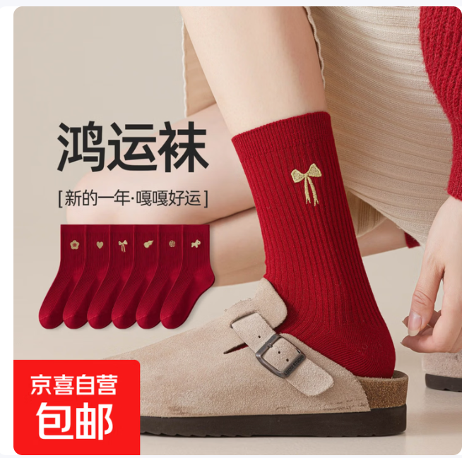 新年鸿运袜3.29元随机2双!波点女袜7.99元5双限时特惠