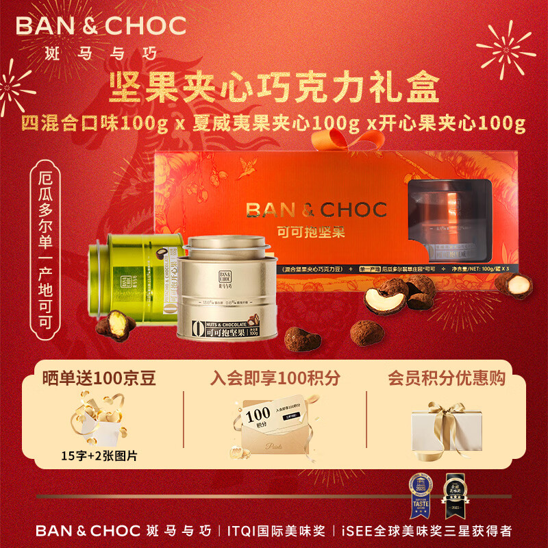 【年货节特惠】斑马与巧坚果夹心巧克力金橙礼盒300g到手价128.9元!