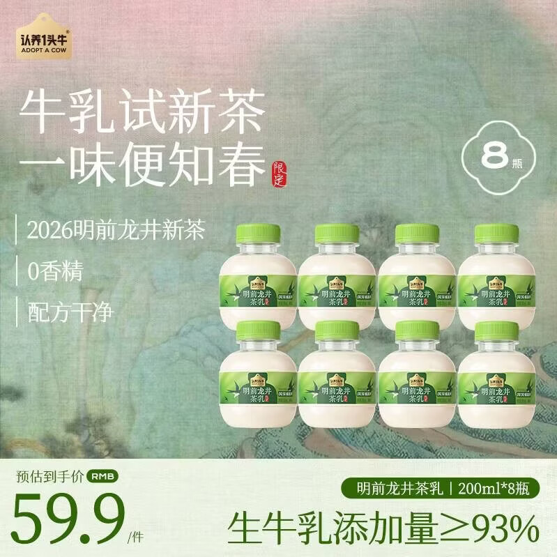 认养一头牛明前龙井吨吨奶茶 200ml*8瓶 首购价47.9元