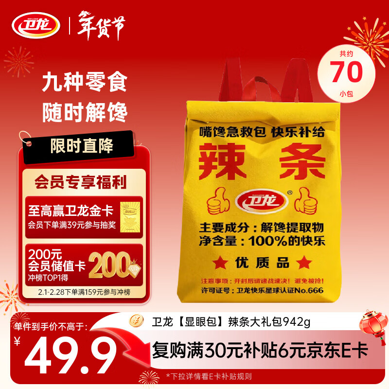 【年货节必囤】卫龙辣条显眼包零食大礼包942g 享百亿补贴加倍补 + 200减20优惠券