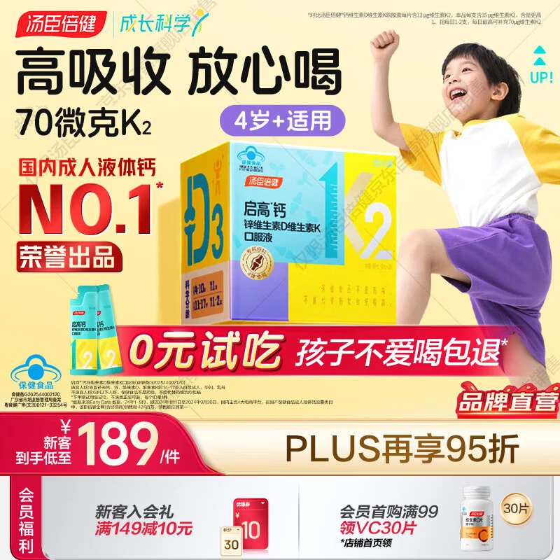 汤臣倍健MY启高儿童液体钙Plus,最终到手价119.55元