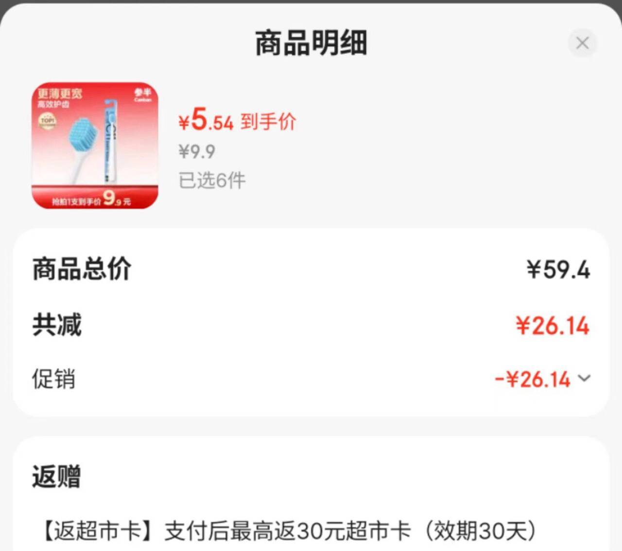 到手29.9元,折0.5/片