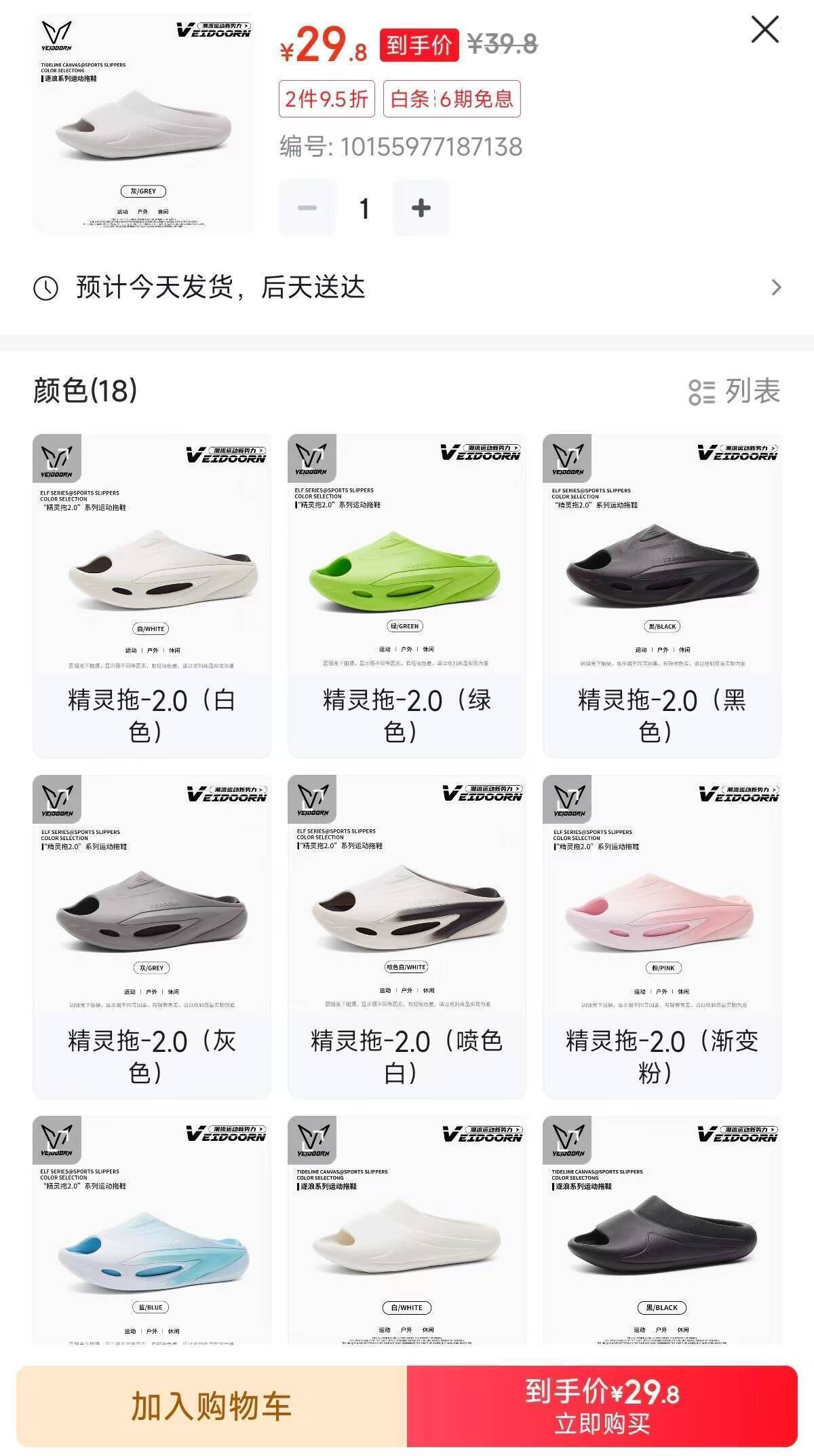 维动精灵拖运动拖鞋仅需29元