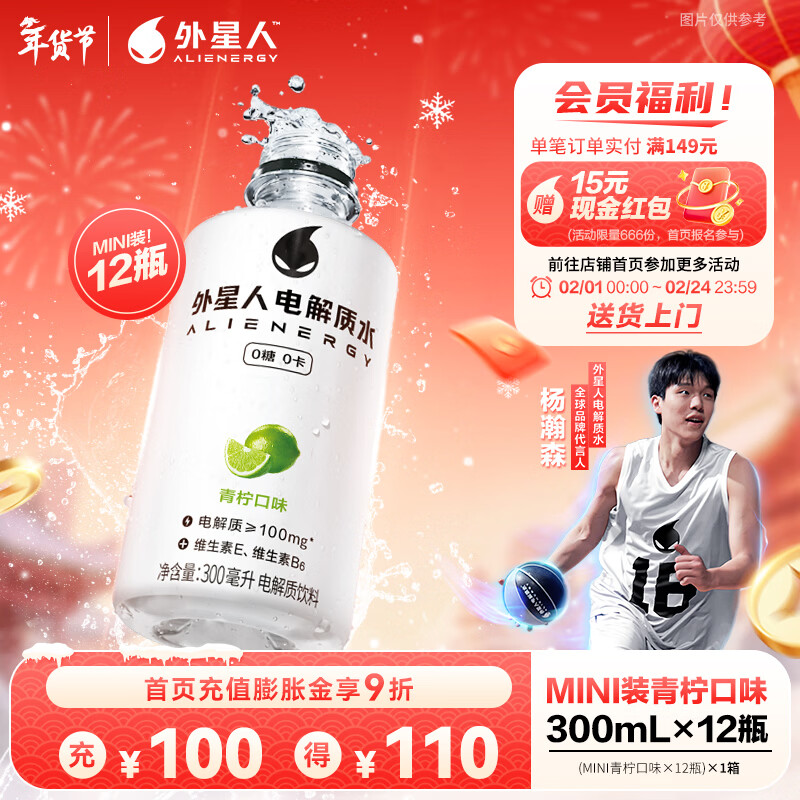 【2.4元/瓶】外星人无糖电解质水限时特惠!凑单后仅29.8元得12瓶