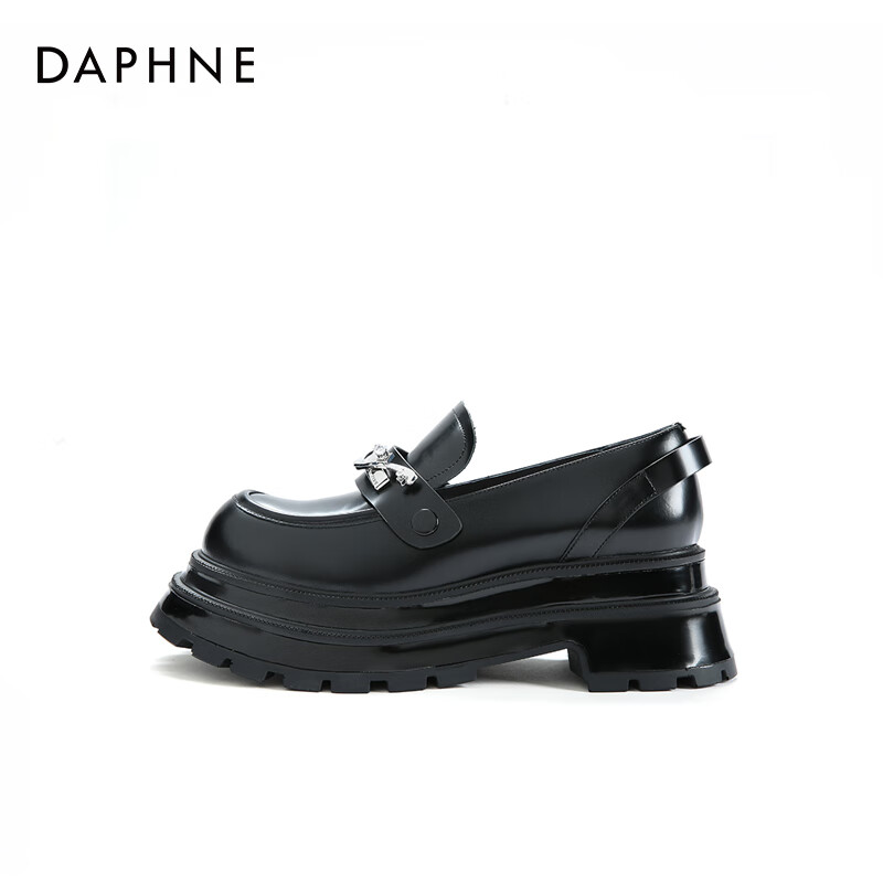 ¥99.9 达芙妮【方糖系列】真皮厚底小皮鞋女2025春季限量版女鞋单鞋子女QJ1 黑色 37 249.9