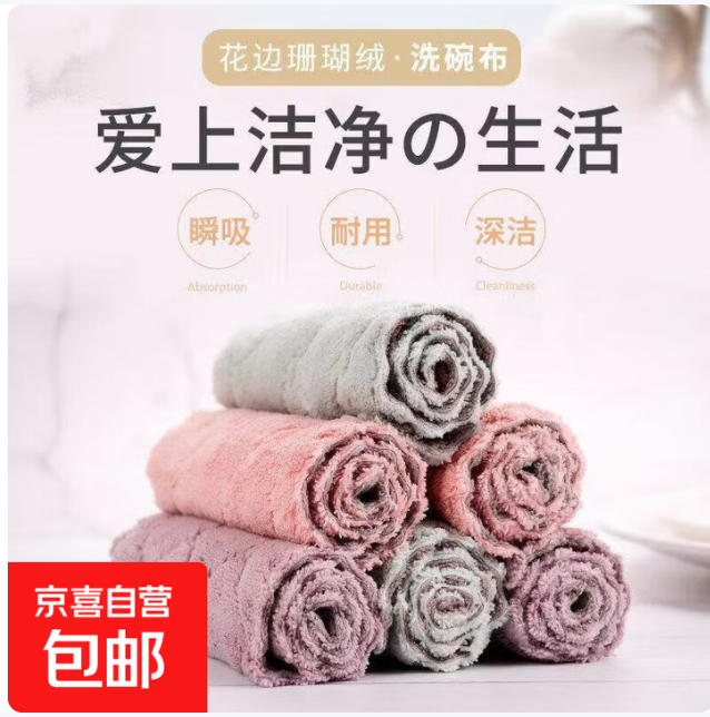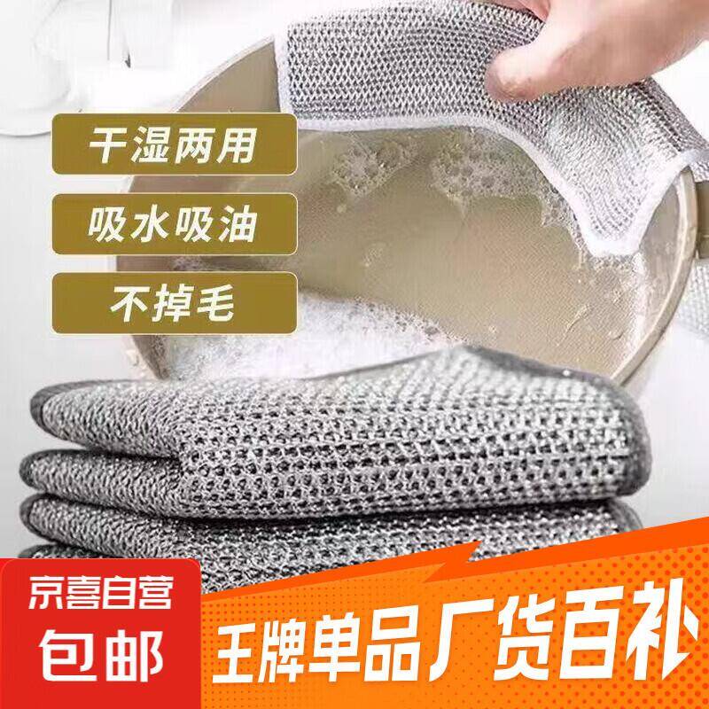 【限时抢购】厨房专用钢丝抹布5条装,仅2.5元!不沾油特厚洗碗巾