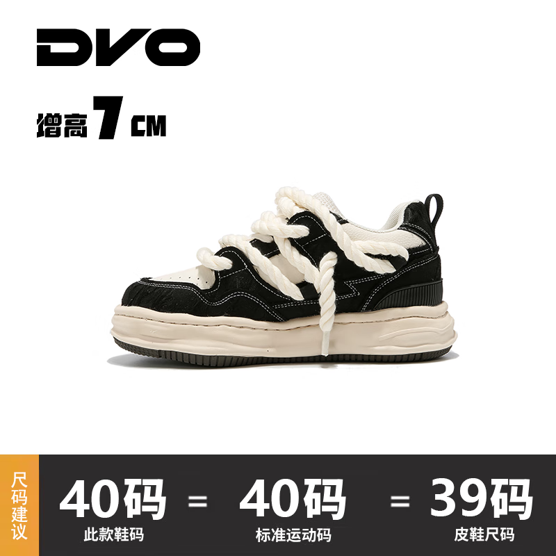 ¥359 DVO【毒液】7CM隐形内增高鞋男秋黑武士轻便厚底鞋百搭休闲面包鞋女 星光蕾丝米 42 男码 509