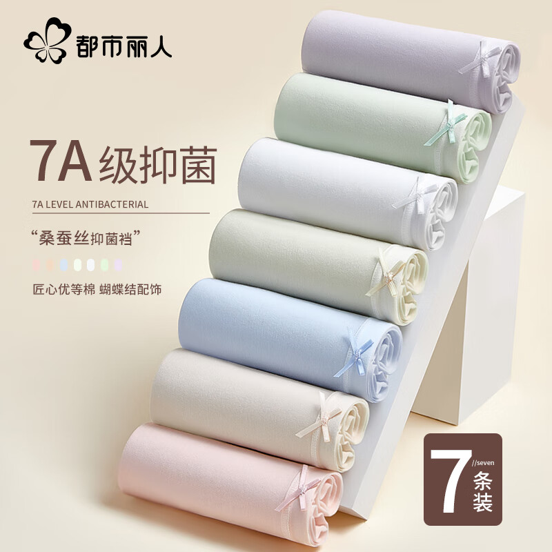 ¥39.9 都市丽人女士内裤女纯棉7A抑菌柔棉吸汗透气舒适亲肤中腰内裤女7条装 款式一 L 59.9