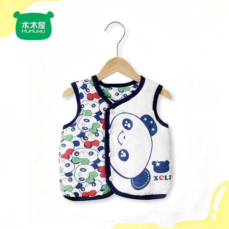 ¥9.9 木木屋(mumuwu)【5】儿童马甲春秋冬外穿婴儿加绒加厚背心宝宝夹棉保暖男童 蓝色马甲【类似花型随机发】 90码数【建议12-24个月】 29.9