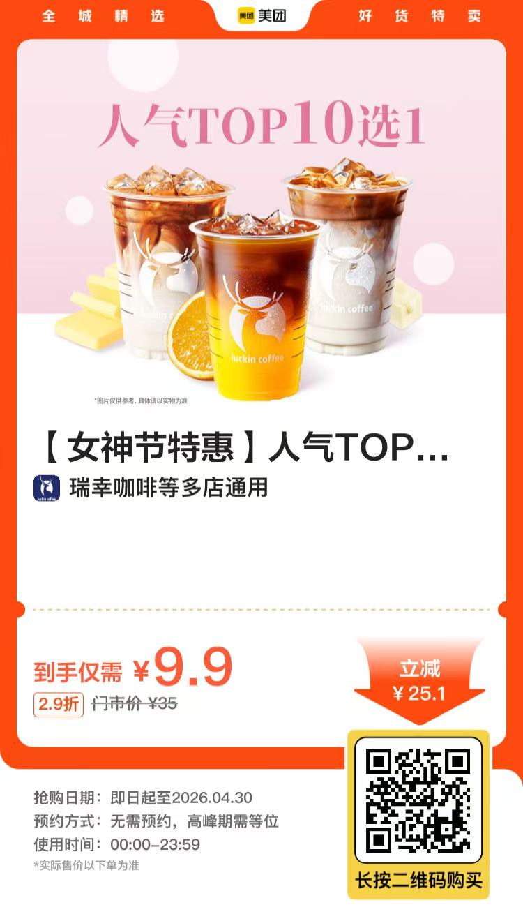 推`荐:荃国多店可兑✔️7天内通用有效,每人每天可囤一张,转给好友一起喝