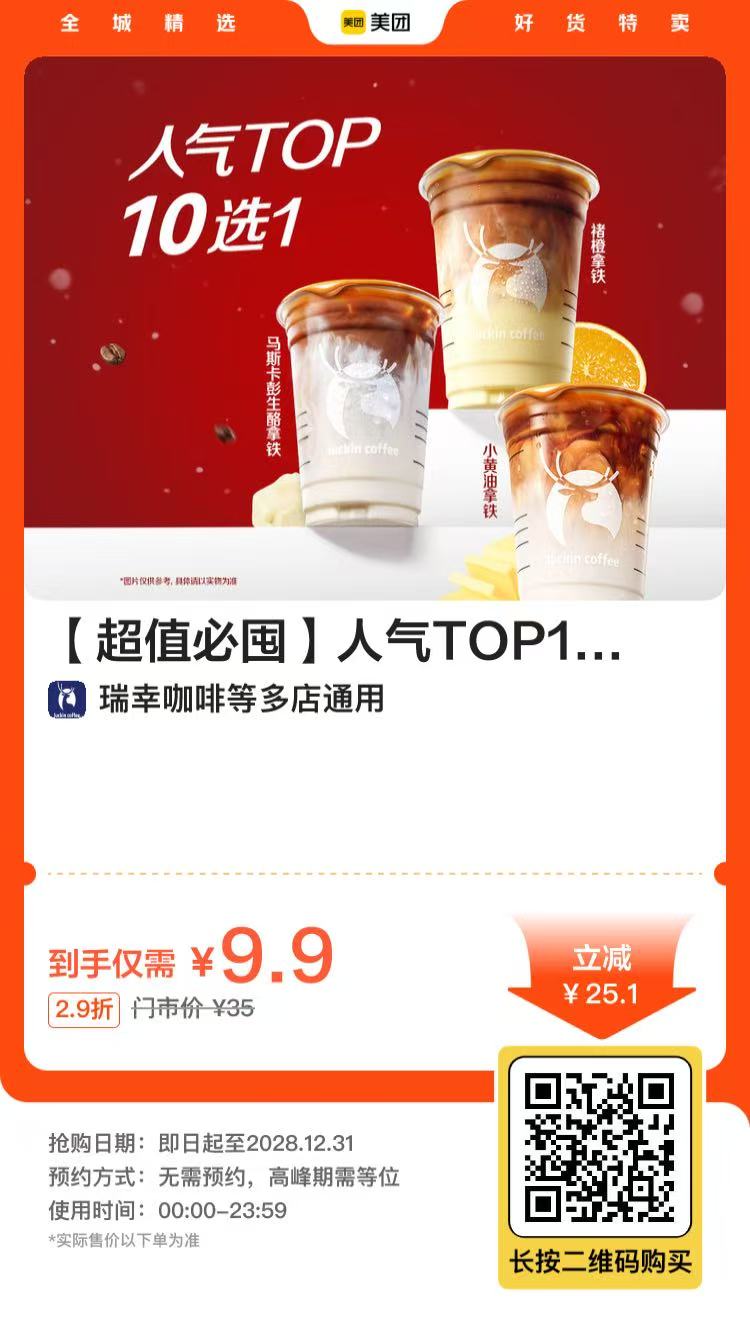 到店|瑞幸 9.9元喝生椰、丝绒!