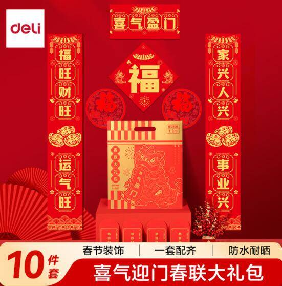 得力对联大礼包10件套仅5.7元!新客立减1元,春节必备速抢