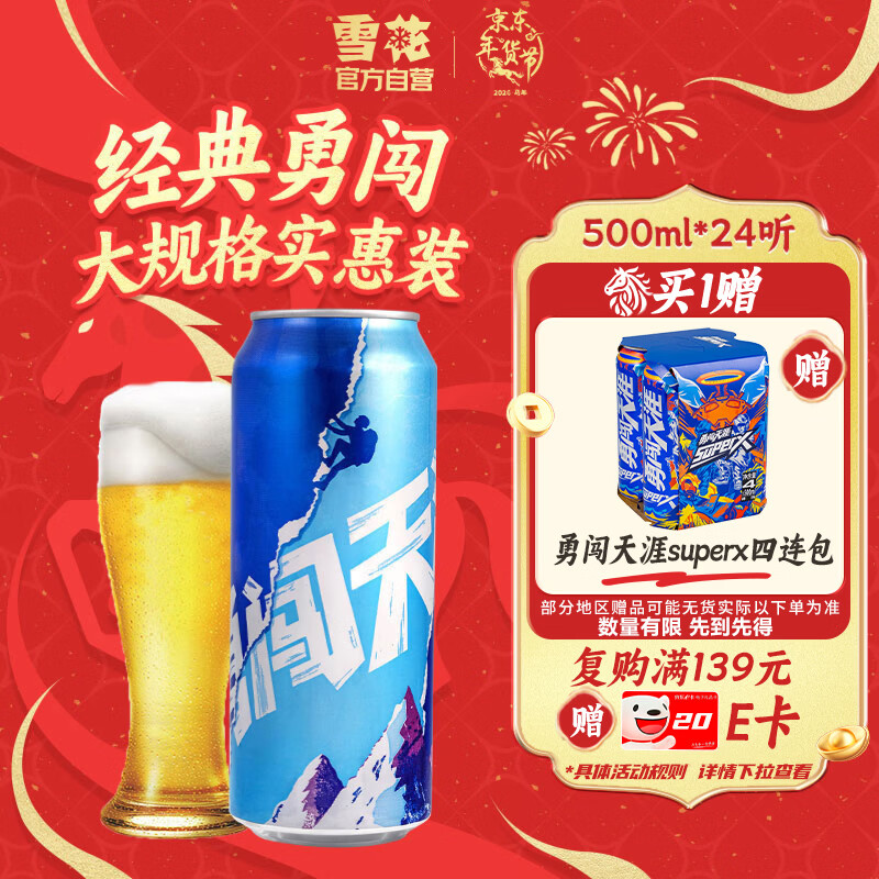 【新年特惠】雪花啤酒勇闯天涯500ml*24听 2件154.1元 限时抢购