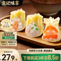 89.9元包邮!袁记味享 三拼云吞拼盘 500g24颗*4件+贈云吞250g*2盒