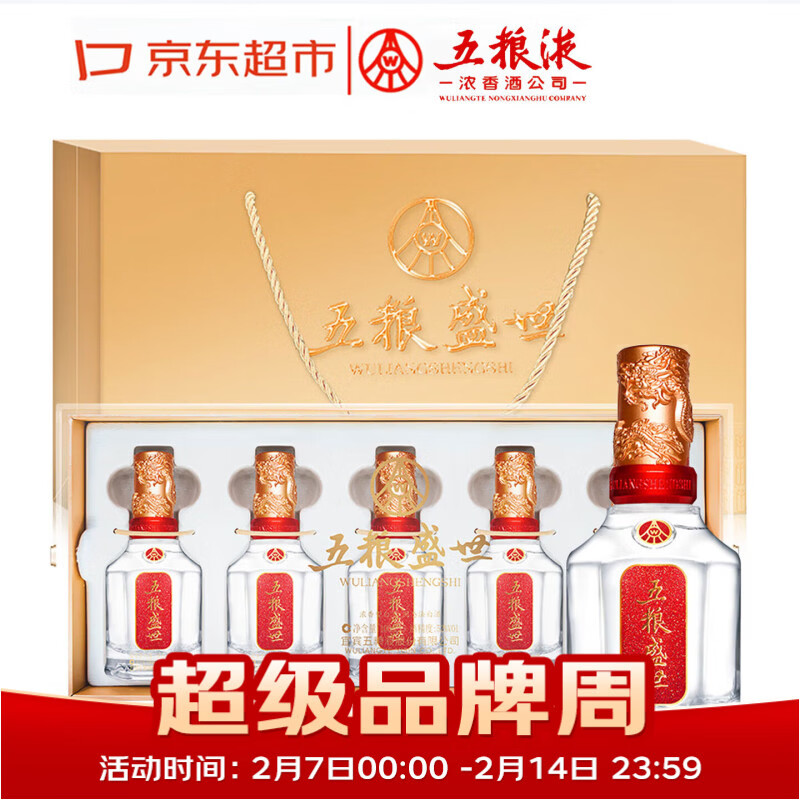 【年货节最后1天】五粮液五粮盛世小金条100ml*5瓶礼盒装,239元包邮到手!