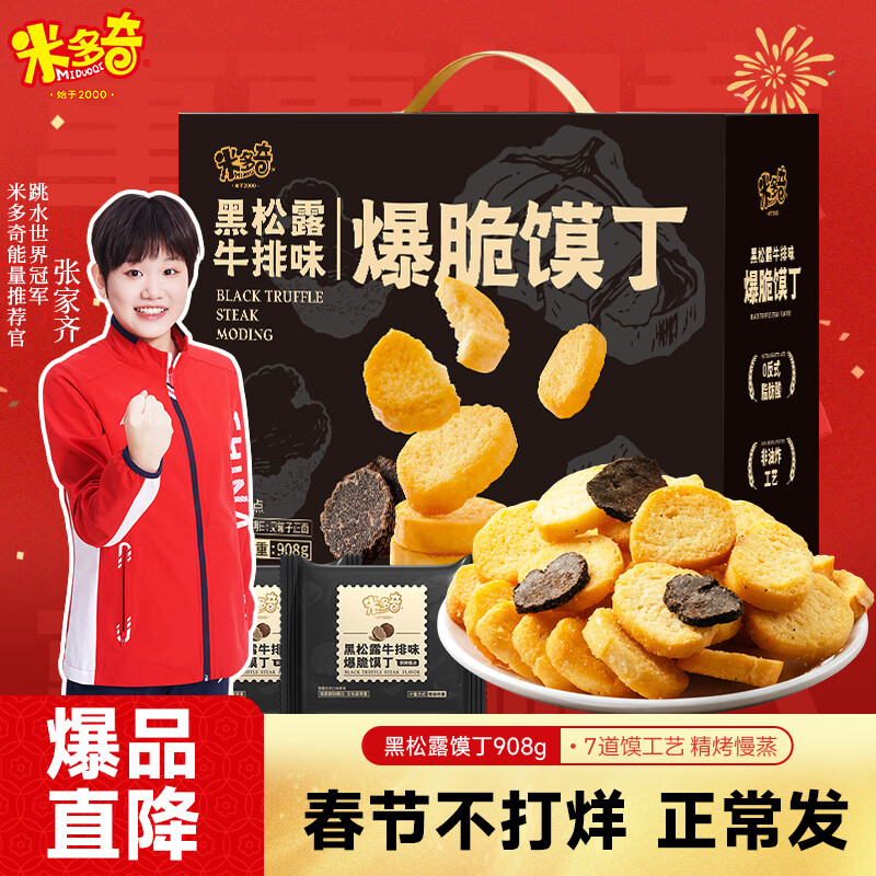【限时抢购】米多奇爆脆馍丁饼干礼盒黑松露牛排味908g仅6.95元!