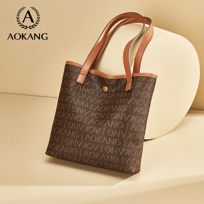 ¥69 奥康(Aokang)包包女包手提包新款复古托特包印花斜挎单肩包生日新年情人节礼物 BG702993-焦糖咖 269