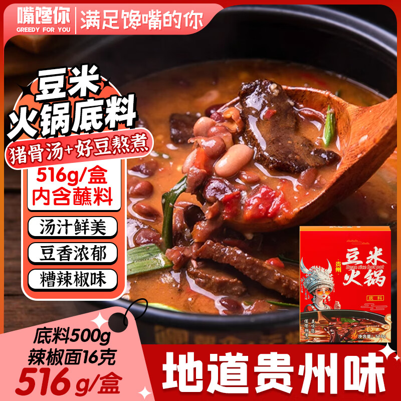 贵州糟辣豆米火锅底料516g首购仅5.6元!赠蘸料限时抢购