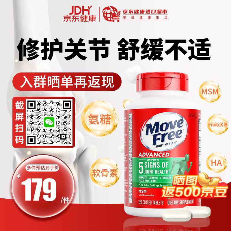 关节健康必备!益节氨糖软骨素钙片绿瓶120粒,3件537元折179元/瓶