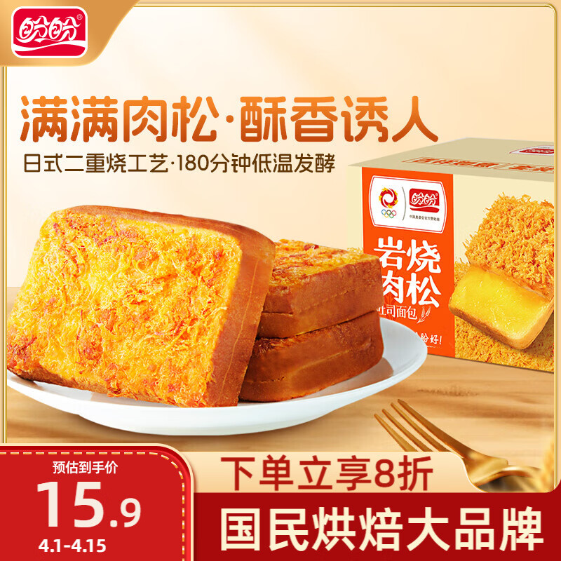 盼盼岩烧肉松吐司520g 乳酪夹心饼干蛋糕 2件仅需12元