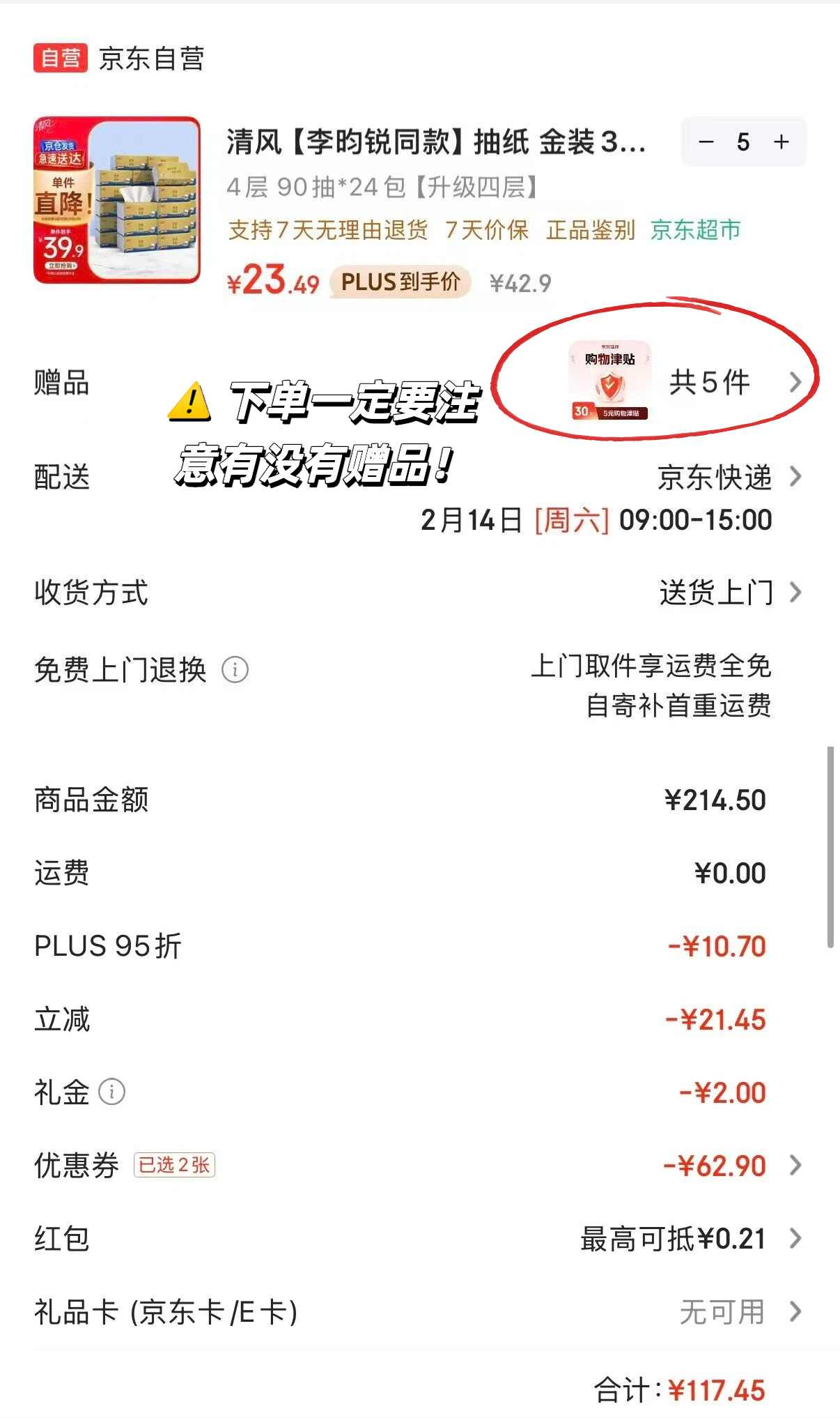 清风金装抽纸0.79元/包 买5件返25元 限时抢购