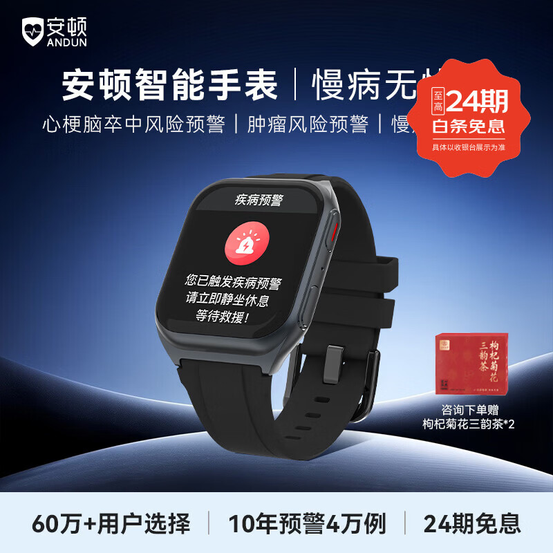 ¥8949 安顿【京配】心梗脑卒中智能手表健康监测预警手表手环睡眠血糖测心率血氧血脂送老人送礼男女表 慢病无忧版-曜石黑 京仓发 8999