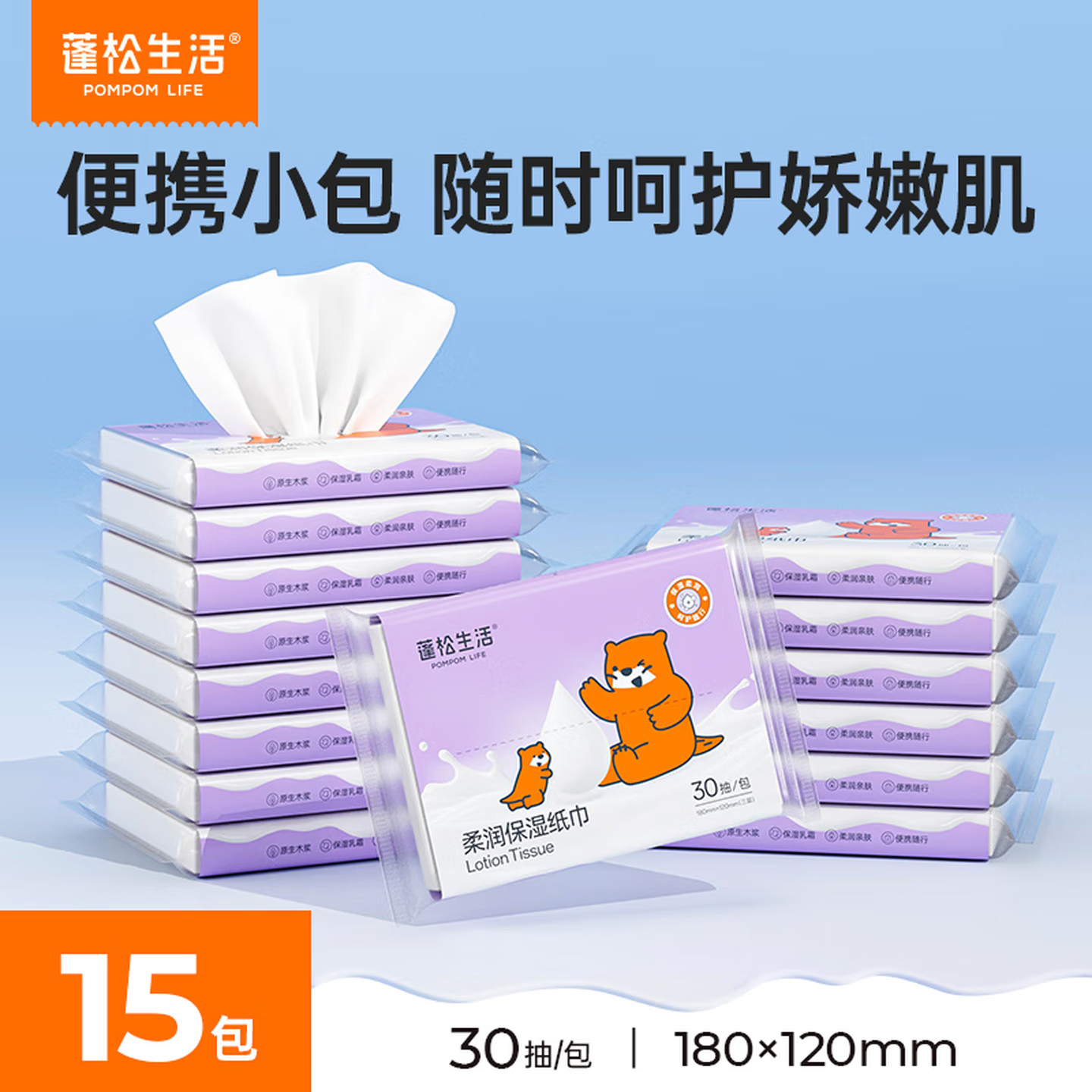 蓬松生活柔润保湿抽纸春节特惠!9.9元15包/16.9元30包,婴幼儿专用手口纸巾,春节照常发货