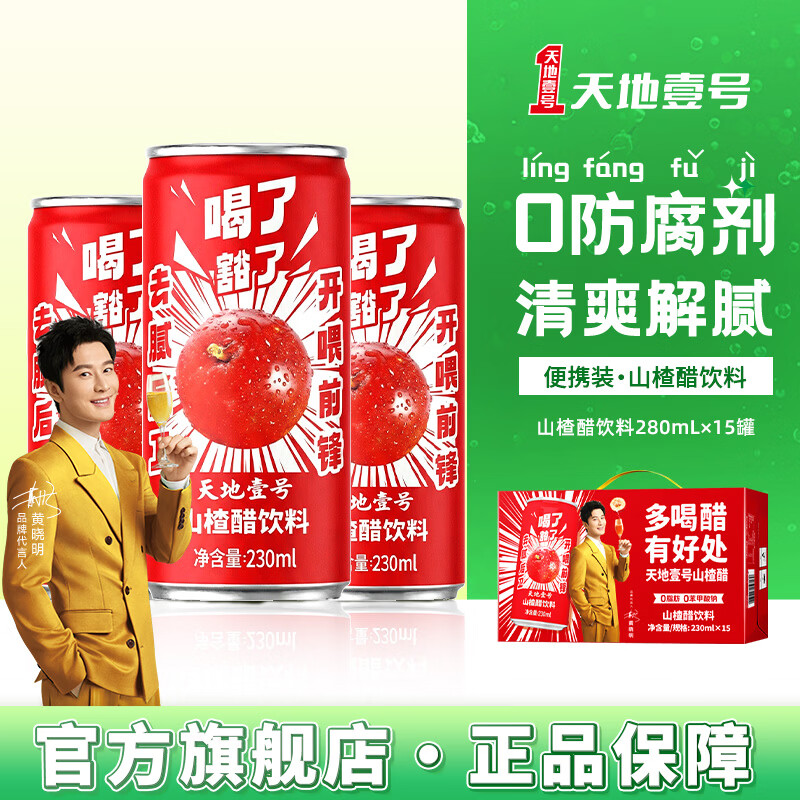 天地壹号山楂醋饮料230ml*15罐,Plus会员到手价仅28.4元