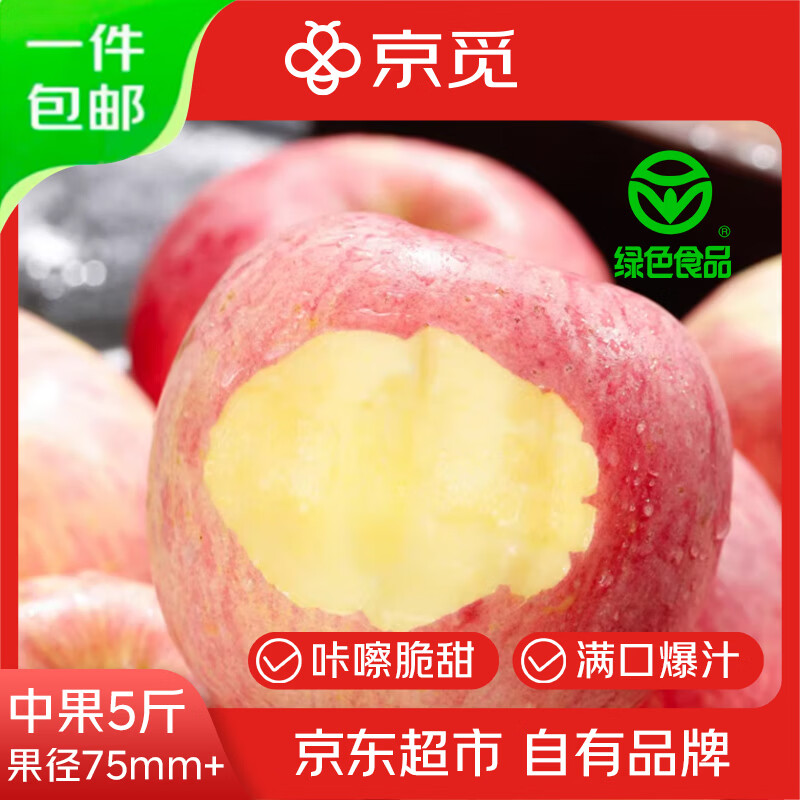 京觅红富士苹果5斤到手29.9元,折合5.9元/斤