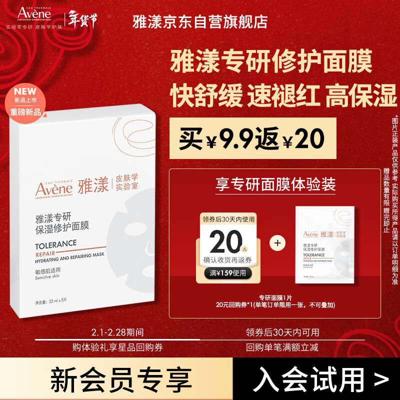 雅漾专研修护保湿面膜1片免费试用!今晚8点会员专享高能保湿修护敏感肌