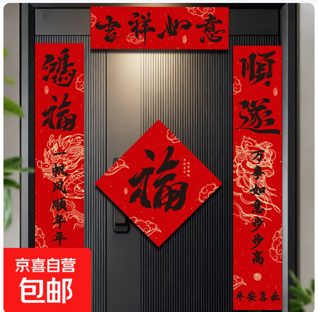 新春特惠!吉祥如意对联+福字门贴仅4.9元