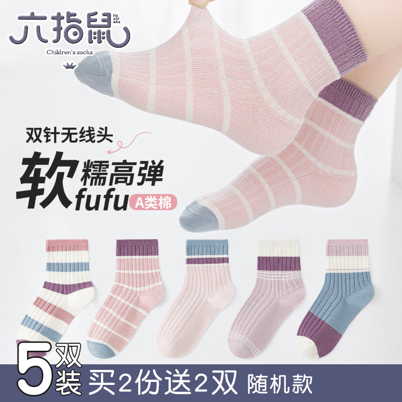 六指鼠儿童袜子5双装仅需17.9元,折合3.5元/双