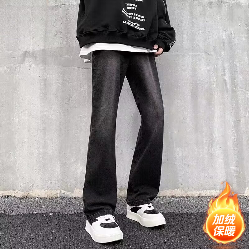 ¥85.99 POUM秋冬季喇叭微喇牛仔裤男装宽松直筒垂感裤子男士阔腿休闲拖地长裤 HCFS-52002 加绒 XL 【身高170-175体重135-150斤】 87.99