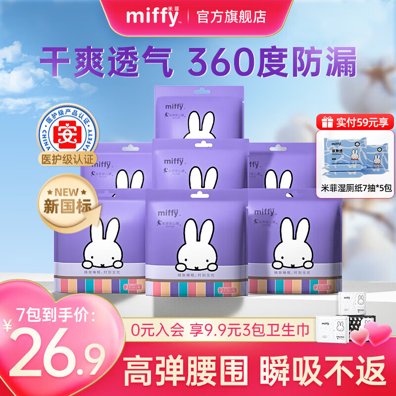 【限时抢购】米菲瞬吸防漏安睡裤7包14条仅15.9元包邮!医护级认证360°防漏