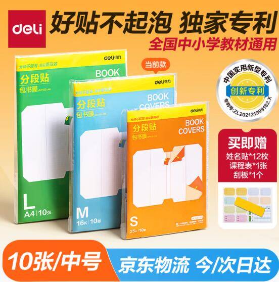 得力分段式包书皮10张,领6.8折券到手仅4.42元!