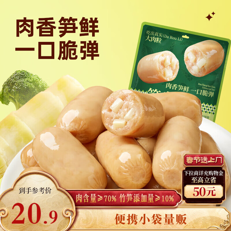三只松鼠笋尖肉肠原味500g袋装仅7.9元!即食解馋代餐零食限时抢购
