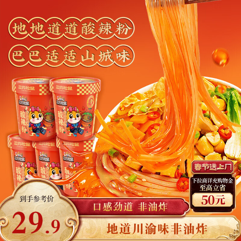 三只松鼠重庆酸辣粉130g*5桶装仅6.9元!宁波地区专享地道重庆风味速食