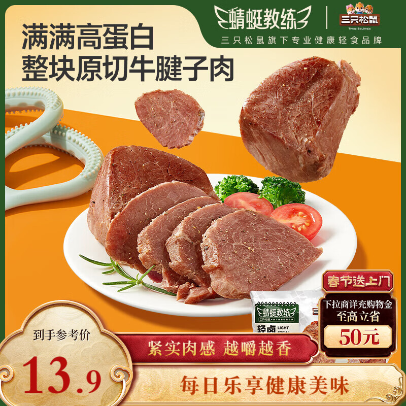 三只松鼠牛腱子肉80g仅1.9元!健身代餐酱卤牛肉开袋即食超值抢购