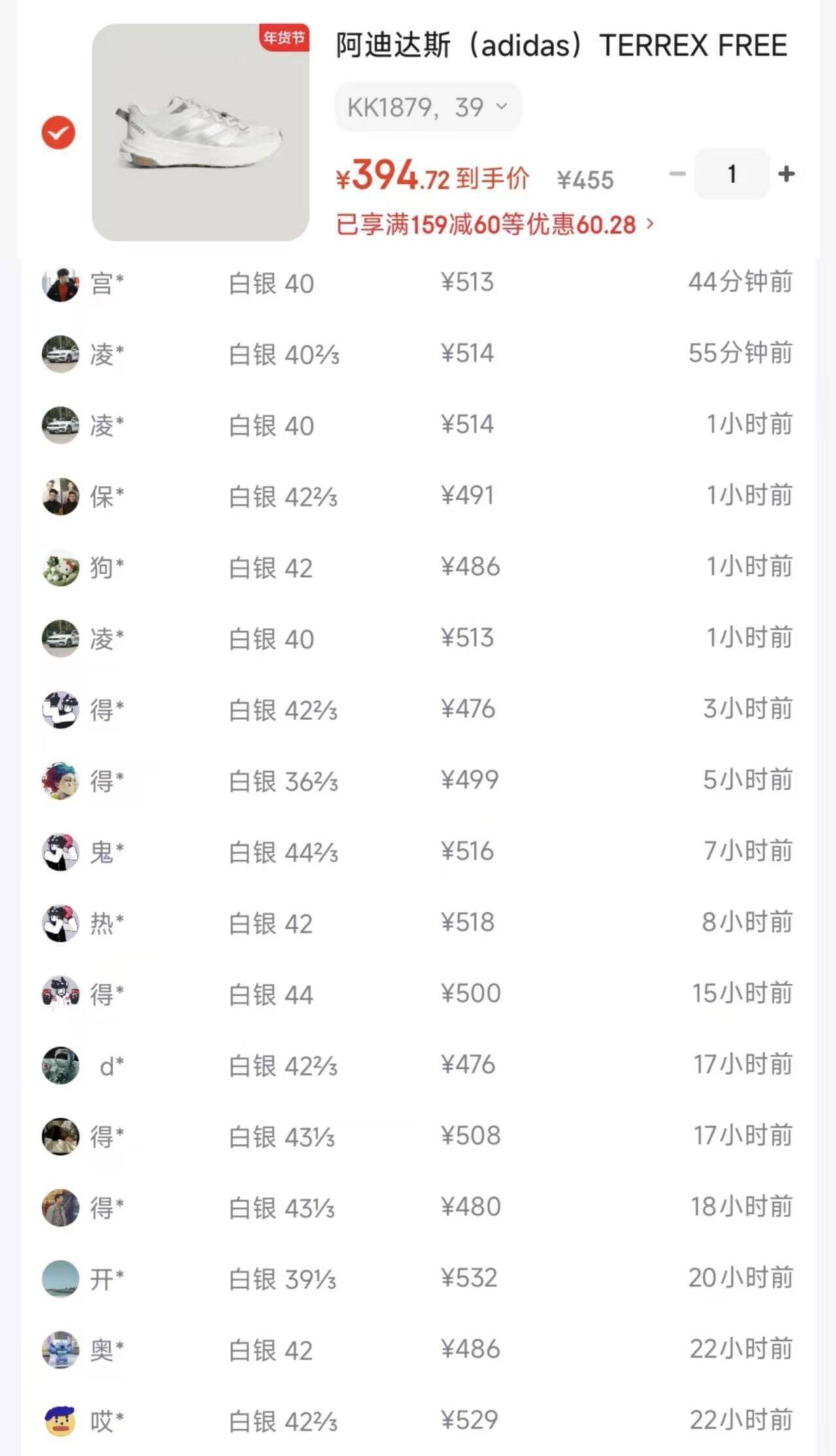 阿迪达斯TERREX FREEHIKER LT运动休闲鞋限时特惠395元!得物514元直降119元
