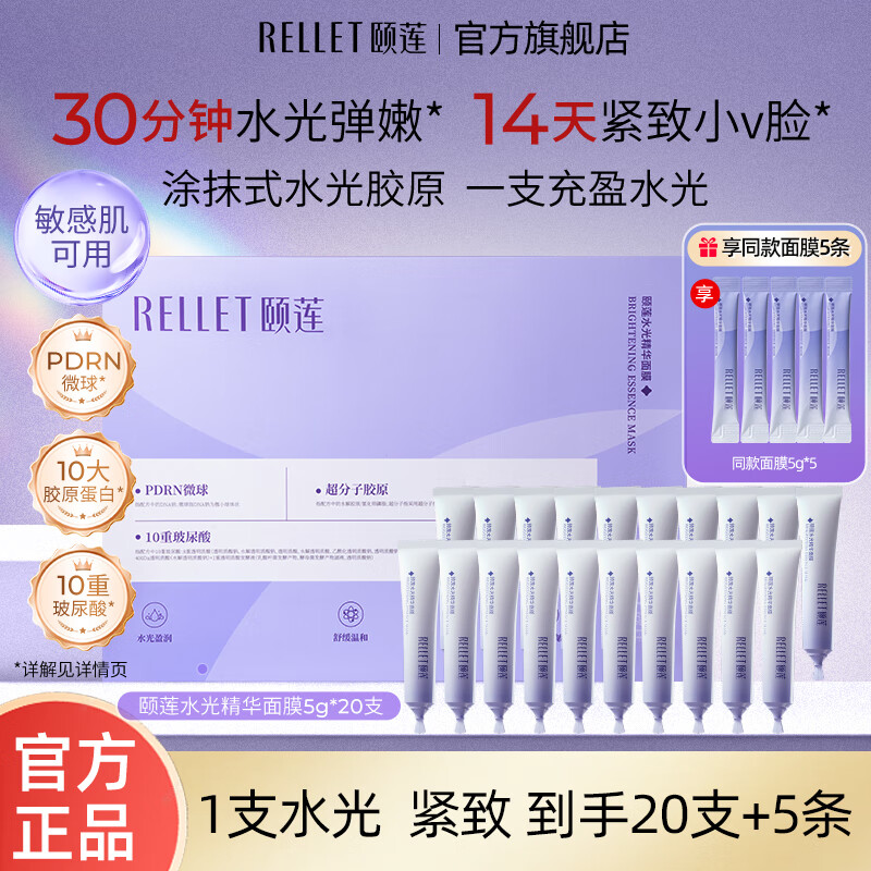 【情人节限定】颐莲水光精华面膜5g*20支+5袋 仅87.2元!速抢女友护肤礼盒