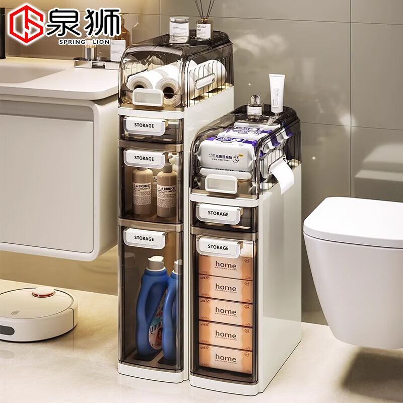 ¥167.4 泉狮卫生间置物架浴室落地夹缝收纳柜厕所马桶侧边柜防水窄缝储物柜 【店长推荐】加厚4层夹缝柜 180