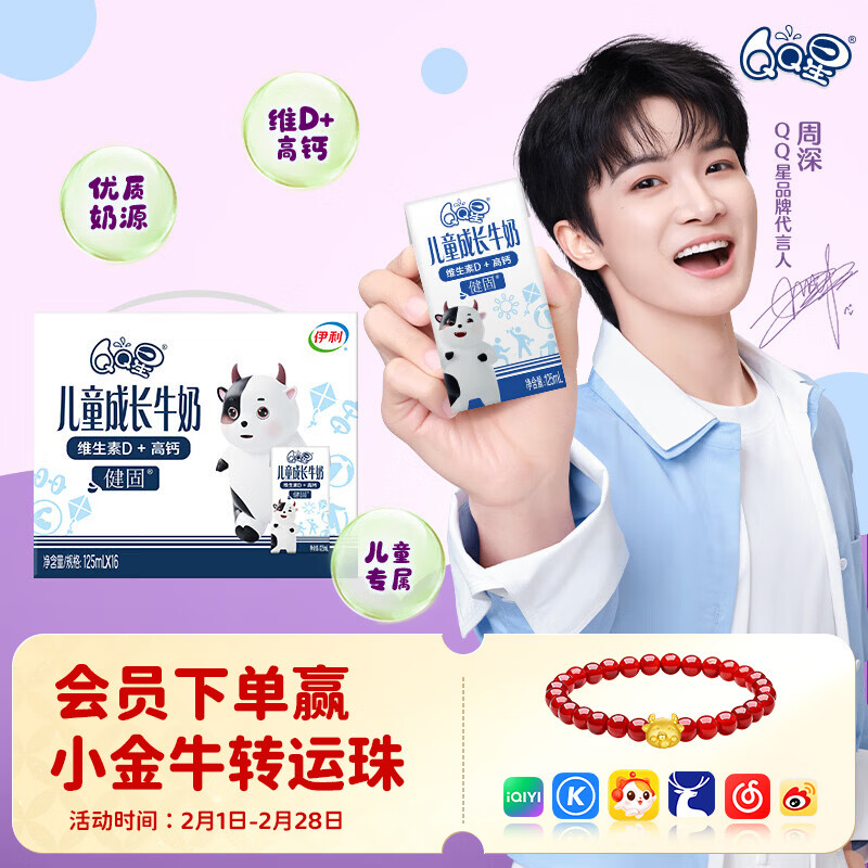【周深代言】伊利QQ星高钙儿童成长牛奶125ml*16盒年货礼盒 仅21.4元/箱!