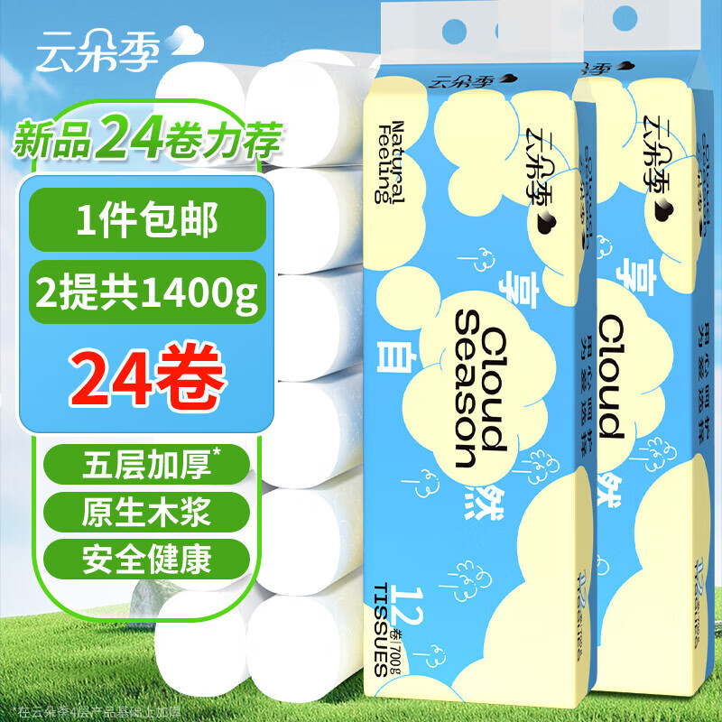 云朵季卷纸5层加厚24卷仅需13.9元